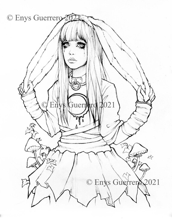 Bunny Tears Coloring Page Goth Fantasy Printable Download Etsy Uk